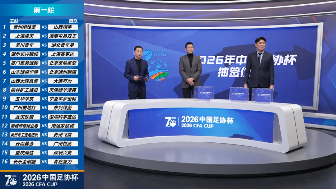 据悉,2026年恰逢中国足协杯举办70周年,本届赛事共有80支球队参赛,为国内最高水平的淘汰制足球杯赛,中超、中甲、中乙及业余球队均可参与。